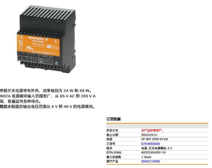 魏德米勒電源w01廣州南創電子科技有限公司