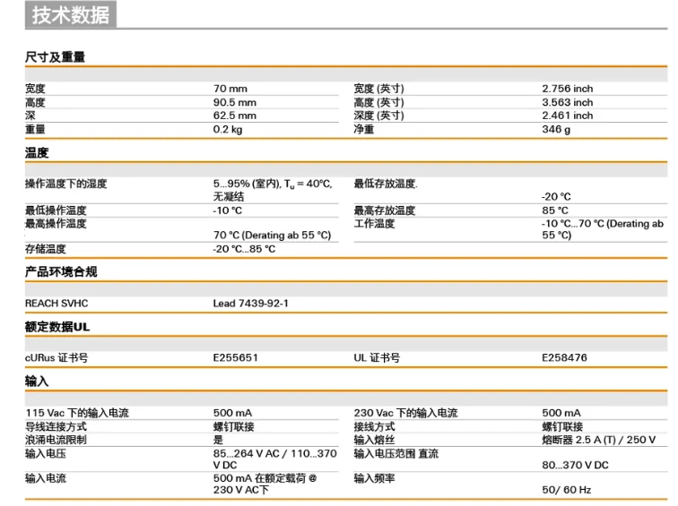 德國魏德米勒電源模塊技術參數圖:w01廣州南創電子科技有限公司