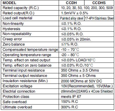 CCDH-500t傳感器部份型號: