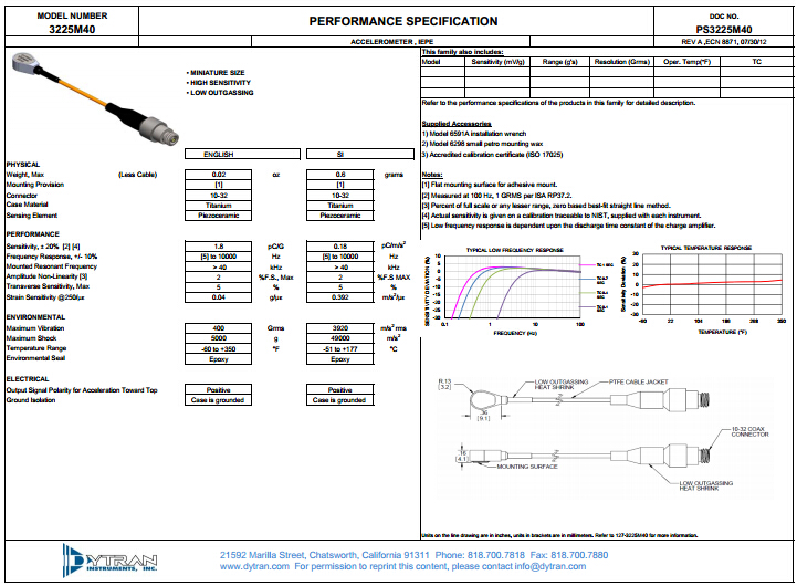 美國Dytran 3225M40加速度傳感器性能規格圖:44K廣州南創電子科技有限公司