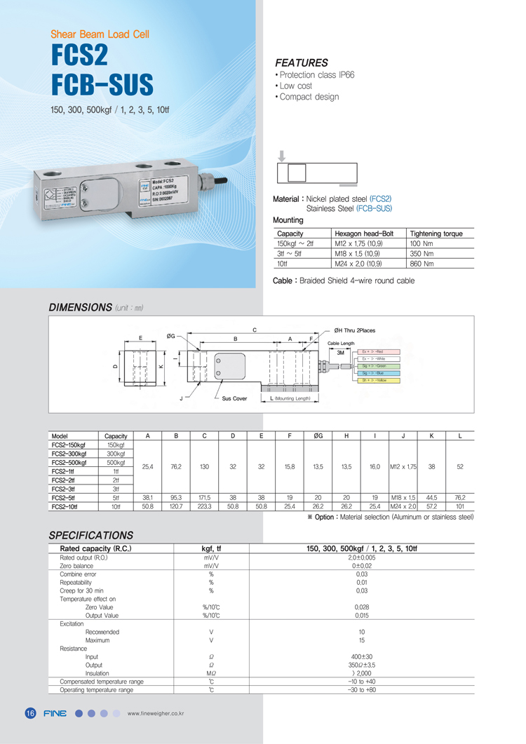 除韓國Fine稱重傳感器 FCS2-150KG型號之外的其它熱門型號: