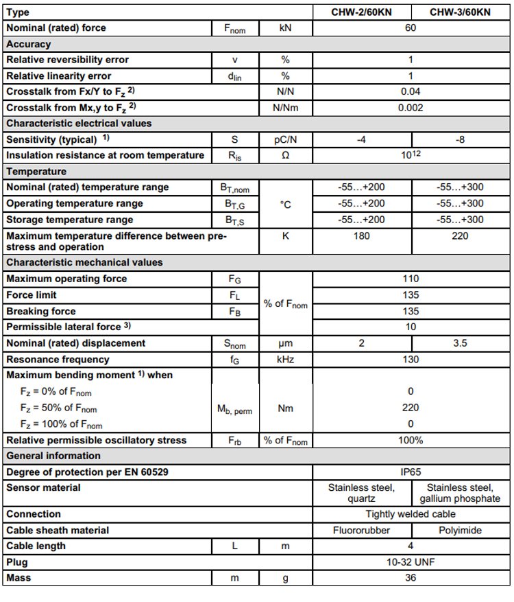 德國HBM力傳感器CHW-2/60KN產品技術參數:9K1廣州南創電子科技有限公司