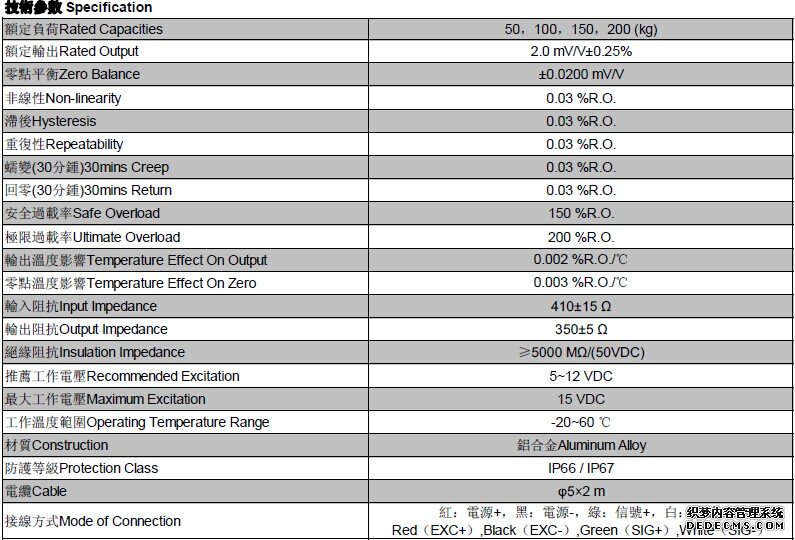 NS6-50kg額定輸出 :2.0 mV/V±0.25%