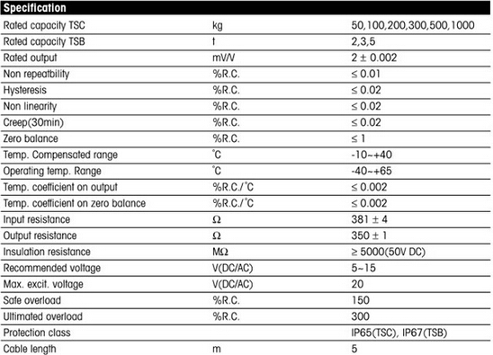 梅特勒托利多稱重傳感器TSC-1T產品參數:SL7廣州南創電子科技有限公司
