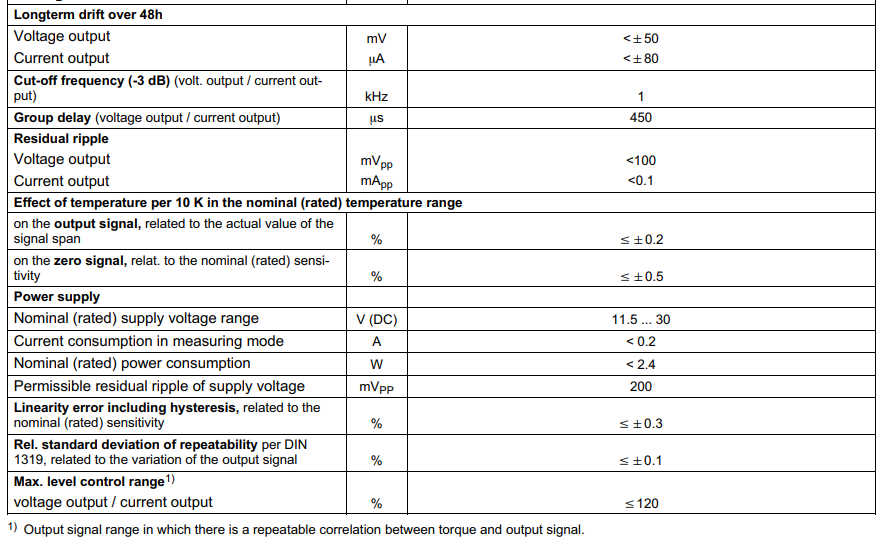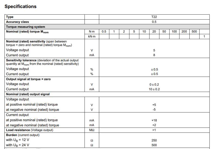 德國HBM T22扭矩傳感器技術參數: