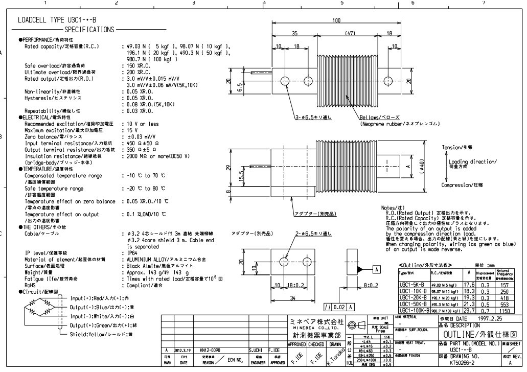 日本NMB U3C1-10K稱重傳感器產品規格型號: