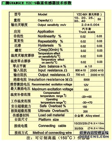廣測GUANGCE YZC-9稱重傳感器所有型號 :