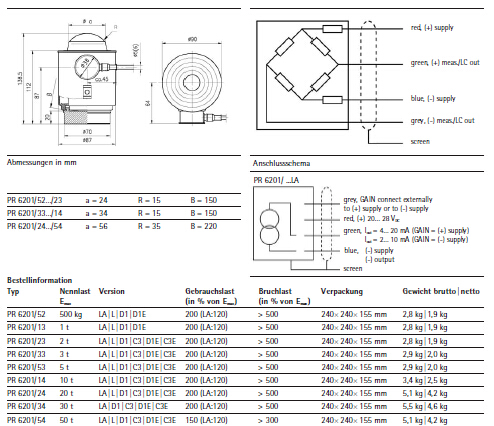 賽多利斯Sartorius PR6201系列稱重傳感器所有量程如下:V2s廣州南創電子科技有限公司