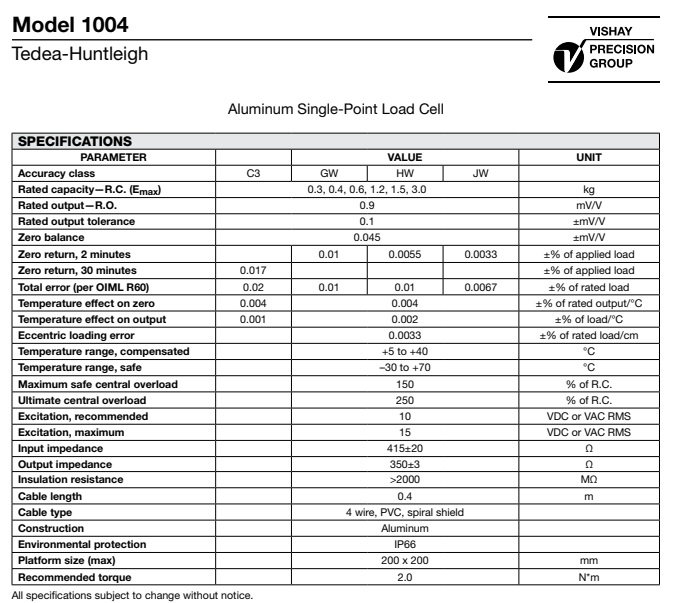 特迪亞tedea稱重傳感器1004-1.5KGHW技術參數圖:qVC廣州南創電子科技有限公司