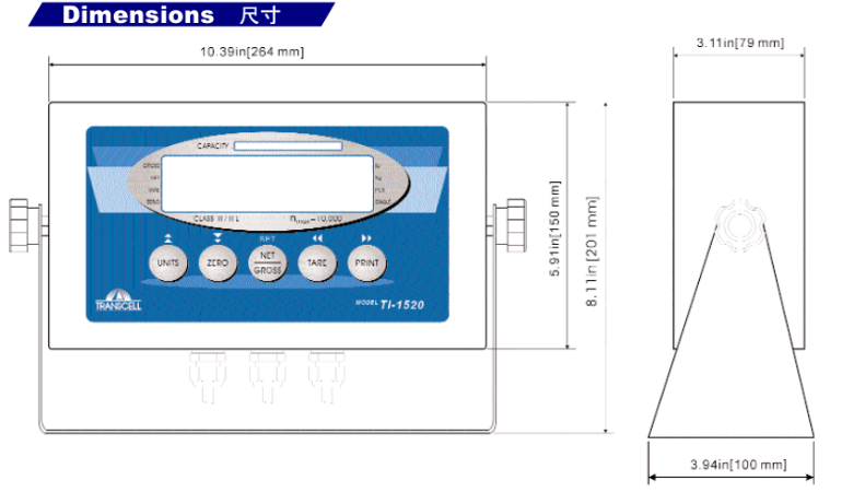 Ye0廣州南創電子科技有限公司美國傳力TranscelTI-1520稱重顯示儀表尺寸圖:Ye0廣州南創電子科技有限公司