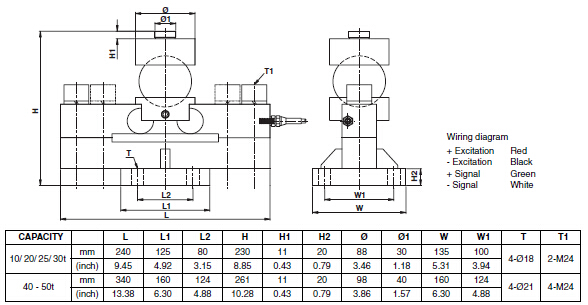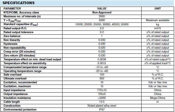 美國世銓Celtron MDB系列稱重傳感器所有量程如下:sZK廣州南創電子科技有限公司