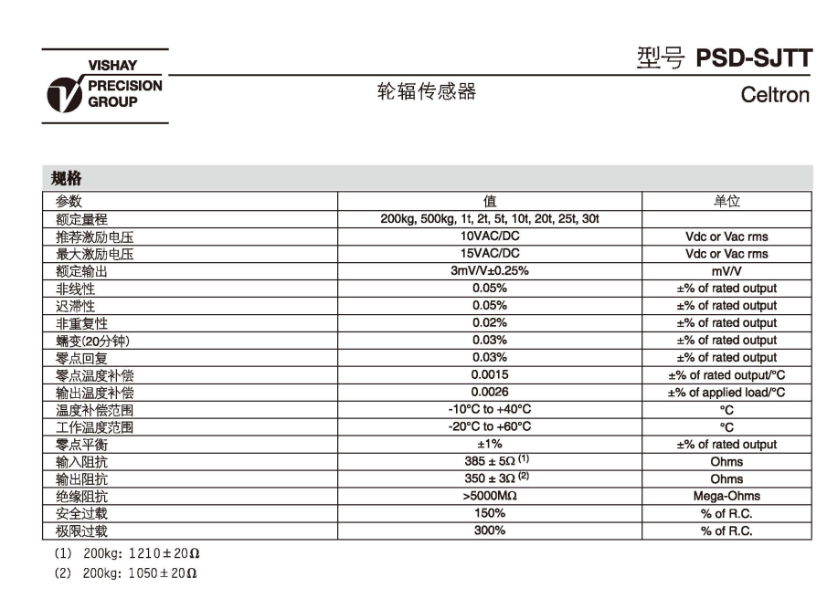 美國vishay celtron稱重傳感器PSD-500kgSJTT產(chǎn)品技術(shù)參數(shù):2yG廣州南創(chuàng)電子科技有限公司