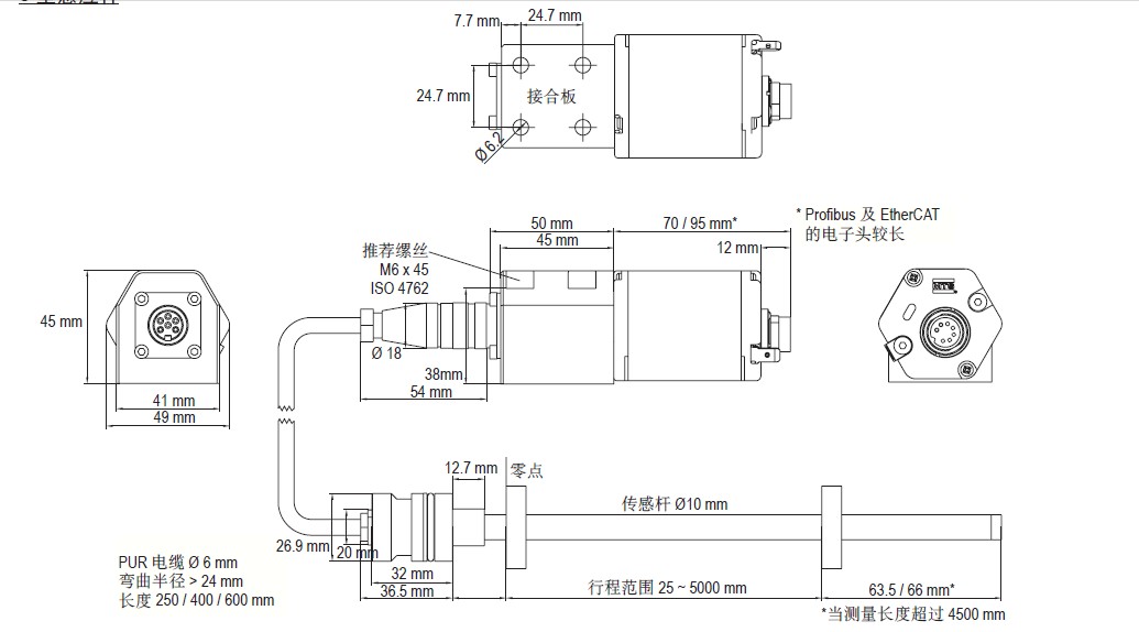 RH4型是MTS 2000年推出的最新型號用以取代日的RH (SS輸出)和RH3(Profibus輸出)。RH4的輸出模式I司時耵擎模擬,CANbus,DeviceNel,Profibus,EtherCAT等。它也可以取替現有的LD與LD2型帶模擬輸出傳感器RH4犁是-個在最苛刻的環境條件下仍能持續正常運作的理想傳感器。傳感器頭部封裝了完整的電子接口模塊來處理電子信號。雙重灌封保證了高度的操作安全性和最優化的EMC保護。位置測量是通過一個崮定在運動機械部分的7X磁鐵,沿著傳感刪桿做無接觸運動來感應。