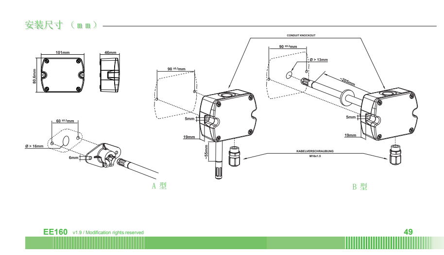 奧地利E+E全系列溫濕度傳感器,ee451系列溫濕度變送器是由奧地利益加義公司專為HVAC系統設計開發的全新系列產品。ee451系列變送器具有高精度、低成本的特性,是測量空氣相對濕度和溫度的理想儀表,能為用戶提供可靠的溫濕度測量解決方案。優秀的品質及全新設計的產品外殼,最大程度地降低了安裝成本,減少了現場的工作量,提升了產品抗污染、抗凝結的性能,從而保證其在工作過程中將誤差降低到最小程度。ee451系列產品采用了最新的E+E生產的HCT01敏感元件,具備更好的長期 ee451 穩定性和抗污能力。結合了多年的校準經驗,ee451的測量精度可以達到±2.5%RH,具有電流(mA)、電壓(V)和數字通訊三種信號輸出方式。現場安裝分為墻面安裝和風管安裝兩種方式。