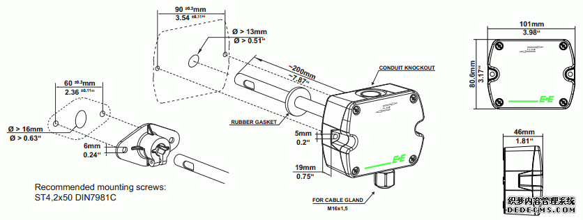 奧地利E+E EE850系列CO2變送器產品尺寸圖:O3b廣州南創電子科技有限公司